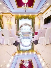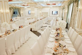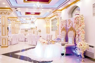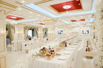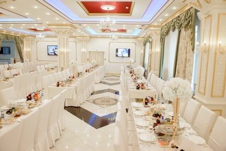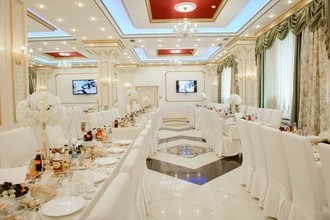 Ковровые дорожки, обилие золота, шикарные троны для молодоженов и элегантный интерьер воспроизводят обстановку роскошного дворца. В распоряжении гостей три банкетных зала на 20, 70 и 400 посадочных мест. Залы оснащены музыкальным оборудованием, а также регулируемой подсветкой, которая подстраивается под цветовую гамму свадьбы.